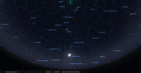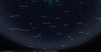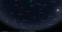 - A 7h55, la Lune atteint sa déclinaison minimale (Sud) : -28°25’45" par rapport au plan de l’équateur céleste ;