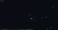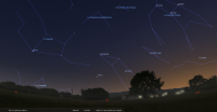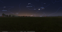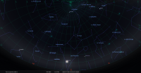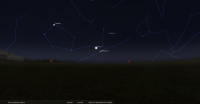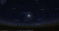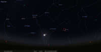 – A 0h42, la Lune est conjointe à Pluton dans le plan équatorial, la planète naine 0°01’ au Sud ; élongation solaire de Pluton 166° Ouest