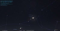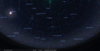 Dans la nuit qui précède, pour notre localisation, la Lune culmine à 0h51 et l’invisible Pluton à 1h06.