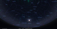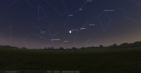 - A 2h22, la Lune arrive devant la constellation du Capricorne (Cap) ; longitude 299°29’ (30e CAP) ; latitude -3°56’, monte.