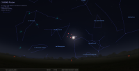 – A 7h27, la Lune est conjointe à Pluton dans le plan équatorial, la planète naine 0°00’23’’ au Sud ; élongation solaire de Pluton 166° Est