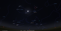 les deux astres sont alors à sont alors à l’Est-sud-est à 50° de hauteur environ et la portion éclairée de la Lune est de 31%.
