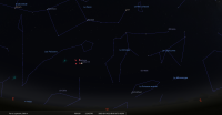 Son élongation est de 17° Ouest ; il est devant la constellation du Lion (Leo) et marque le 10e degré du signe de la Vierge.