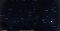 – A 11h05, la Lune arrive devant la constellation des Gémeaux (Gem) ; longitude 91°27’ (2e CAN) ; latitude +5°04’, descend.