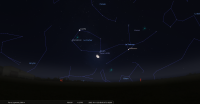 - A 7h36, la Lune est conjointe aux Pléiades dans le plan écliptique, l’amas ouvert (Messier 45) 0°52’ au Sud.