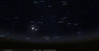 Son élongation est de 13° Ouest ; il est devant la constellation de la Vierge (Vir) et marque le 14e degré du signe de la Balance.