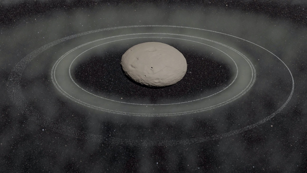 Vue d’artiste des anneaux de Chiron, reconstituée à partir de l’observation d’une occultation stellaire en 2023