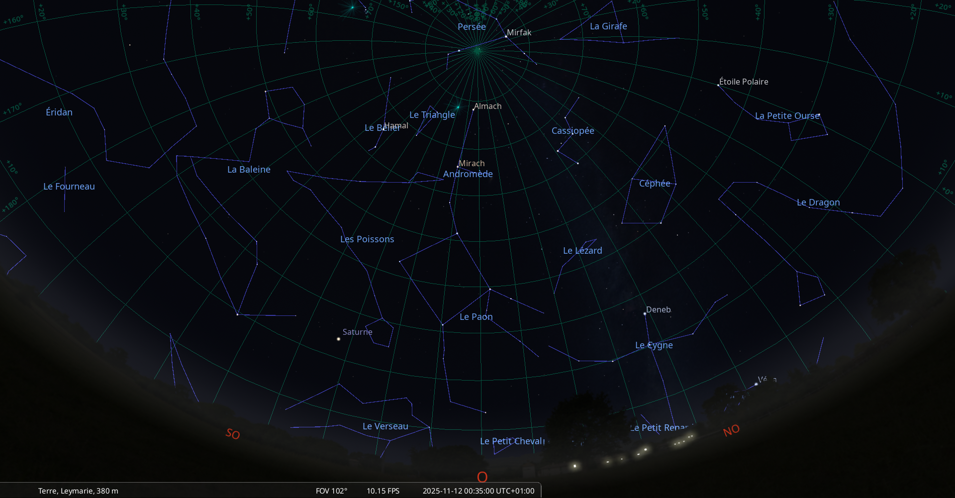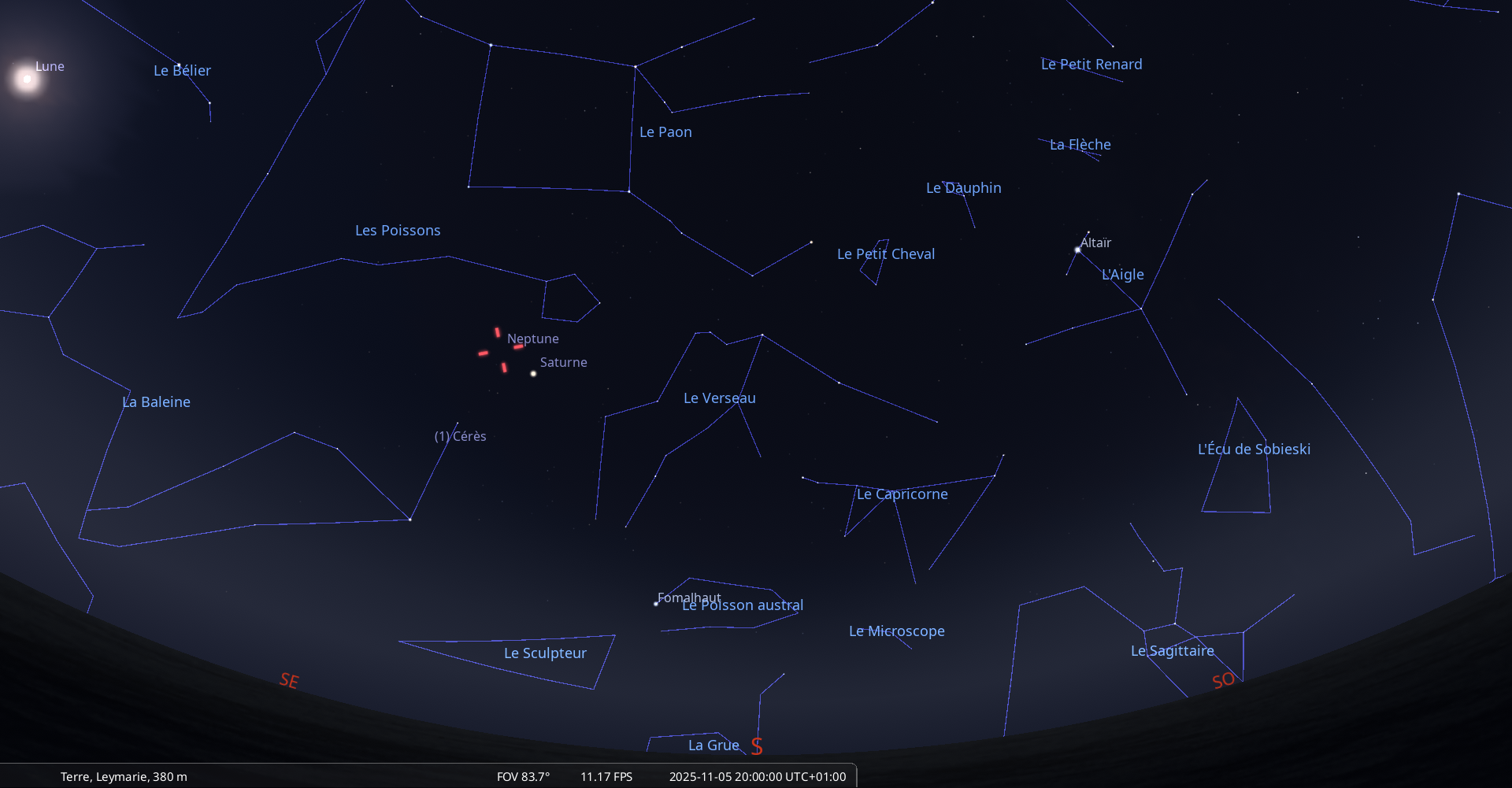 Elle culmine le 6 novembre à 0h55, à 67° de hauteur, soit 6° plus haut que la veille