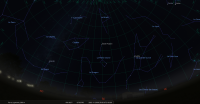 Son élongation est de 10° Ouest ; il est devant la constellation de la Balance (Lib) et marque le 17e degré du signe du Scorpion.