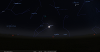 Au petit matin de ce jour, pour notre localisation, Vénus se lève à 6h53 et la Lune, en son dernier croissant, à 7h15.