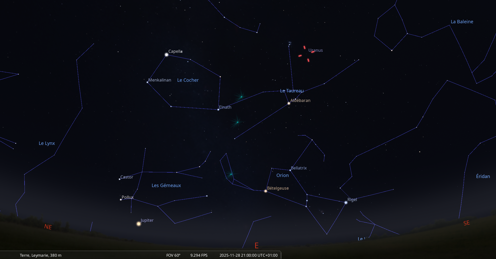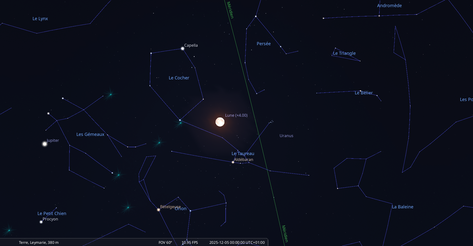- L’étoile Aldébaran au méridien à la mi-nuit (0h41 pour notre localisation)