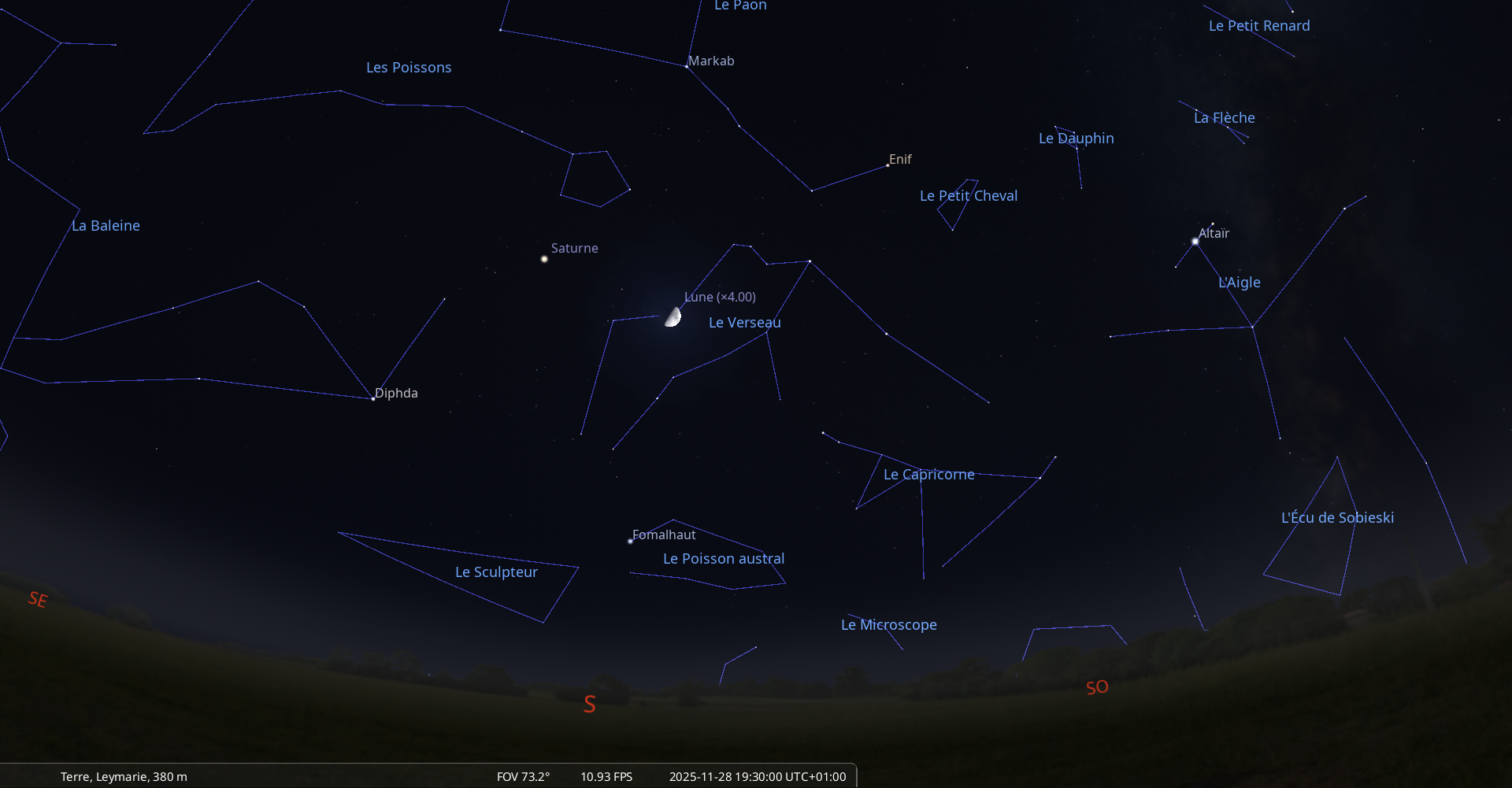 Ce soir, la Lune culmine à 20h01 et Saturne à 20h02 pour notre localisation ;