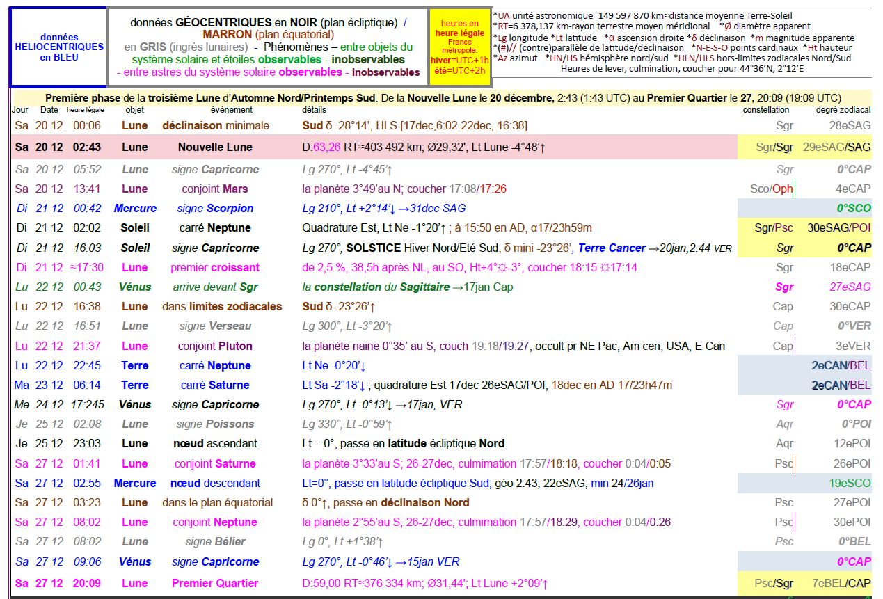 - Dans le signe du Sagittaire (longitude 240° à 270°) depuis le 22 novembre, 2h35 (1h35 UTC),
