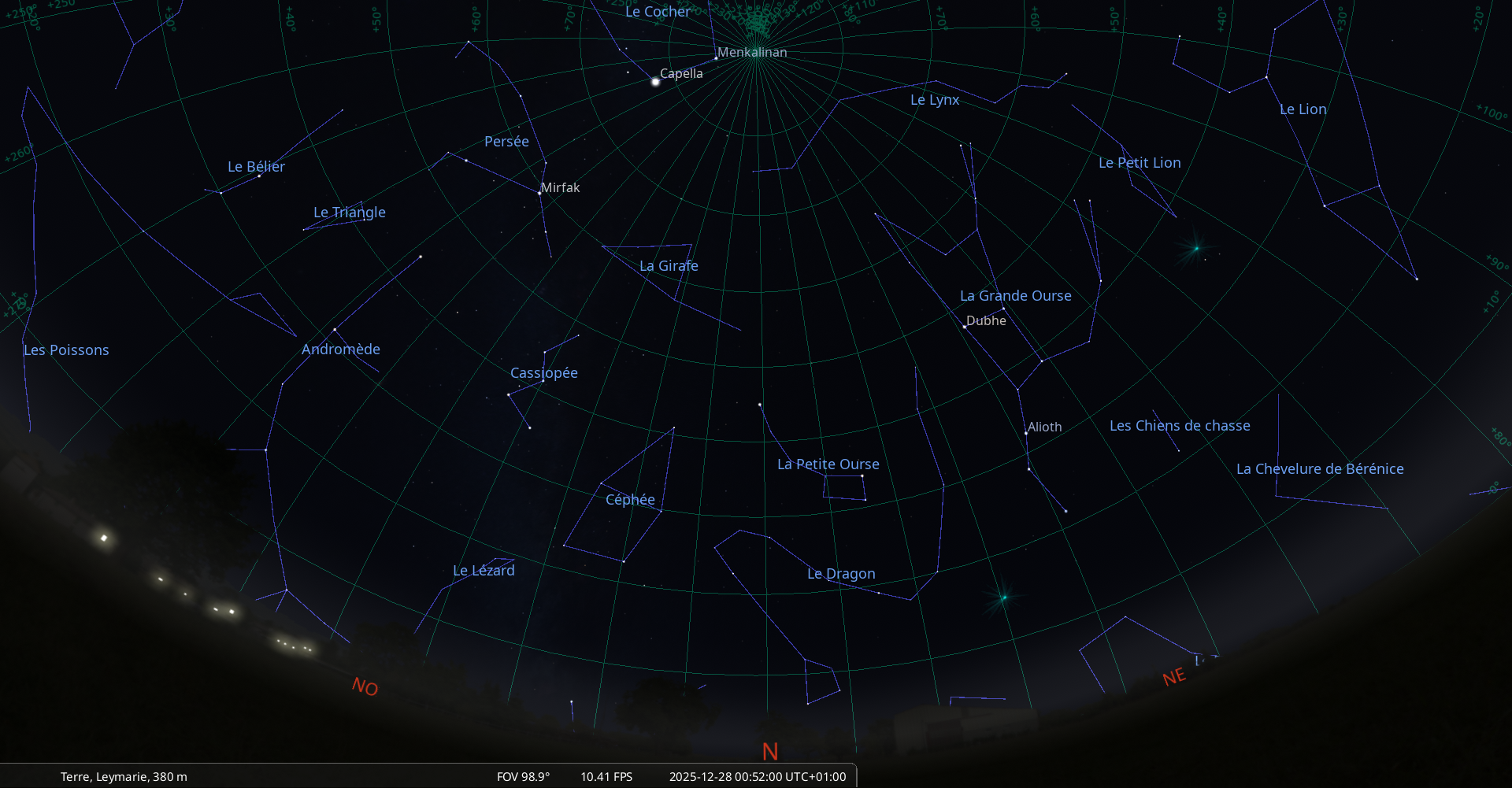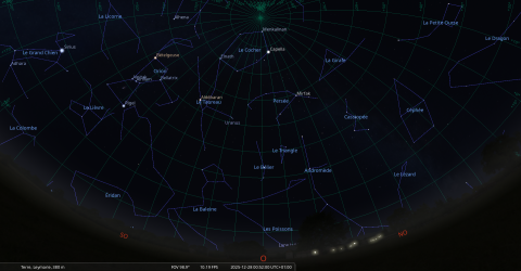 – Aux alentours de 1h00, maximum attendu de l’ essaim météoritique des Leo minorides de décembre