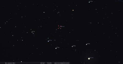 Le 26 décembre au soir, la Lune culmine à 17h57 et Saturne à 18h18 pour notre localisation ;