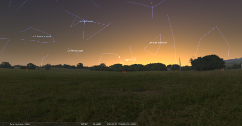 Ce soir, pour notre localisation, la Lune se couche à 17h08, Mars à 17h26, tous deux invisibles.