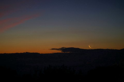 – Aux alentours de 17h00, soit 16h00 UTC, le croissant primeur de la nouvelle lunaison,