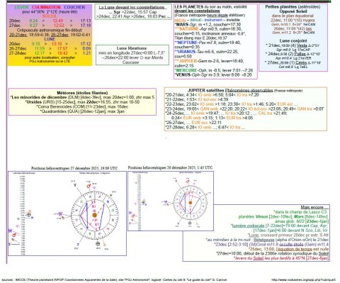 - A 13h41, la Lune est conjointe à Mars dans le plan écliptique, la planète 3°49’ au Nord ; longitude 273°56’ (4e CAP).