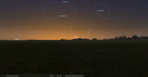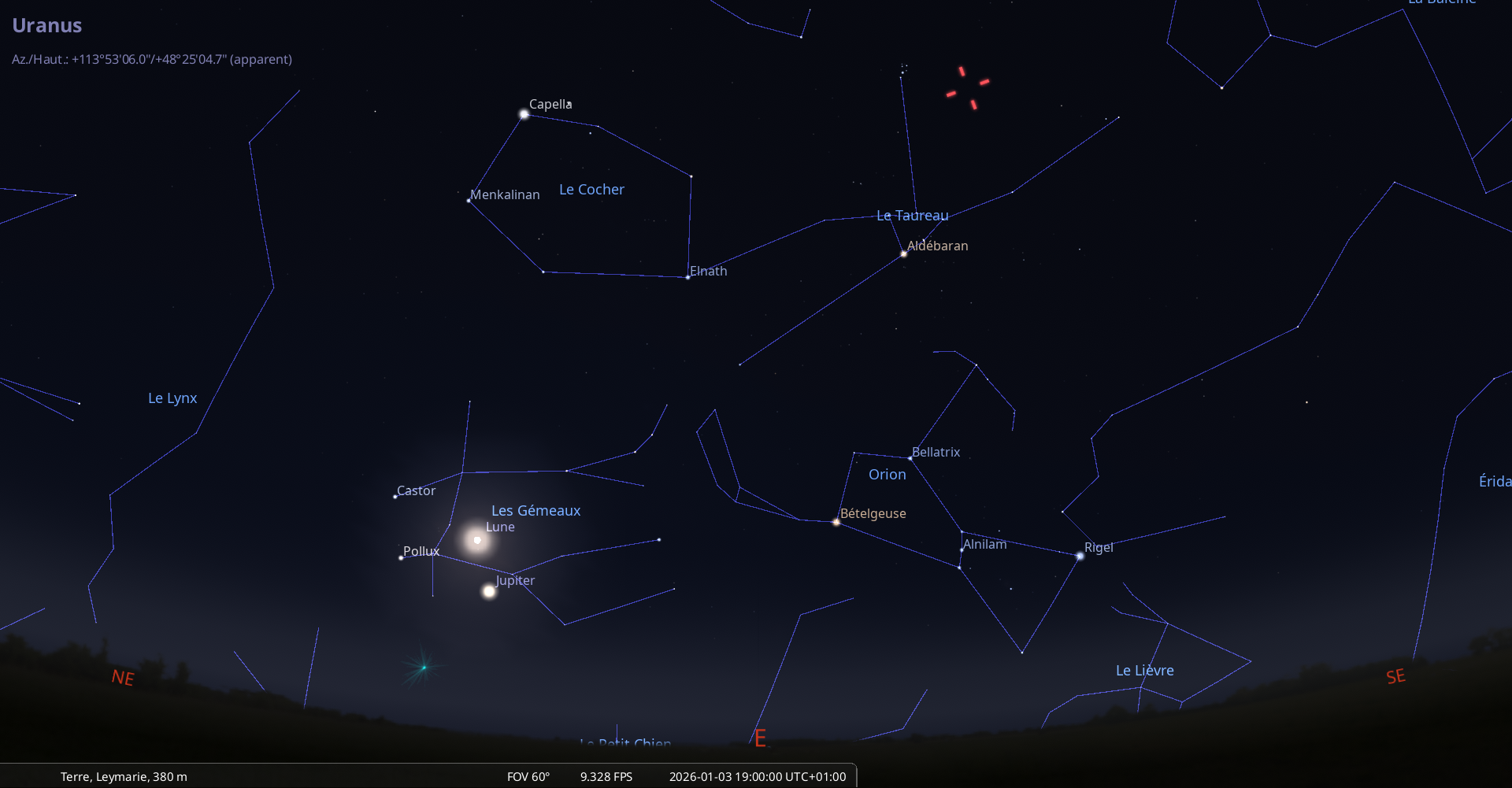 Uranus se couche le 1er janvier à 5h16, la Lune à 6h34.