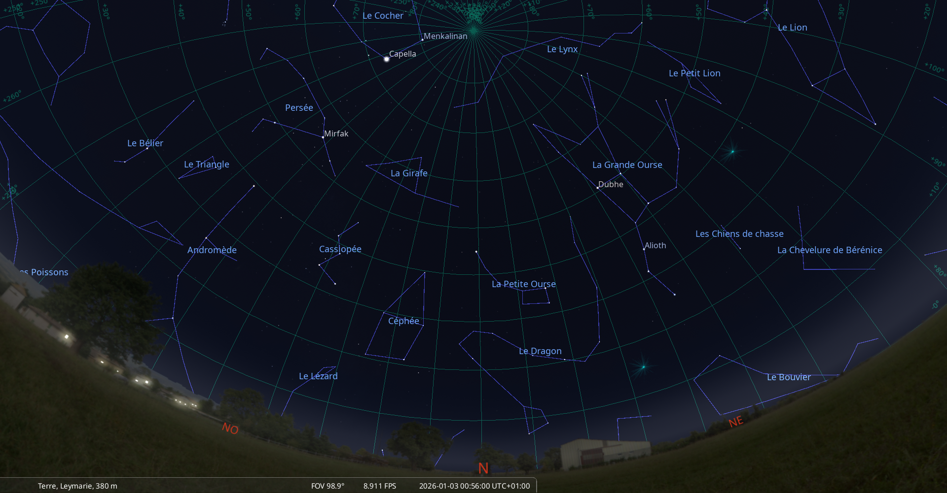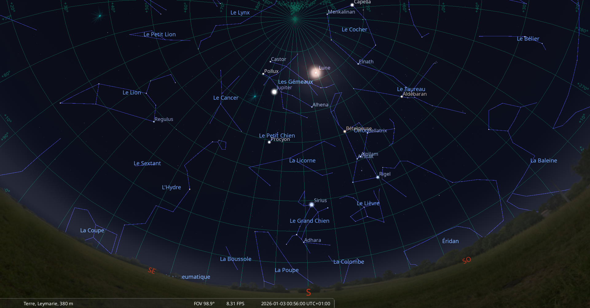 le 1er janvier à 23h23 et le 3 janvier à 0h30 à notre méridien.