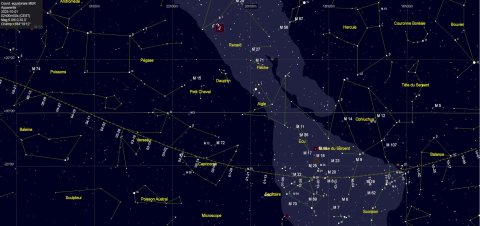 - A 5h15, l’astéroïde (34) Circé est à l’opposition du Soleil dans le plan équatorial