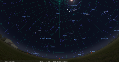 culmine au coucher du Soleil et se couche aux alentours du minuit vrai.