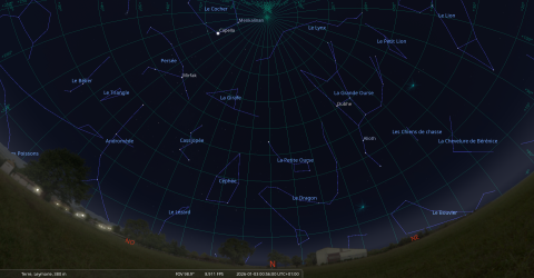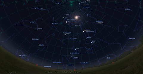 - A 3h23, la Lune traverse le plan équatorial : elle passe en déclinaison Nord ;