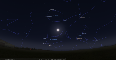 Aldébaran se couche à 5h47, la Lune à 6h38.