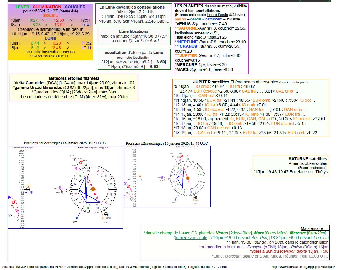 Ciel du mois ; Phénomènes astronomiques ; Visibilité de la Lune et des planètes ; Cartes du ciel