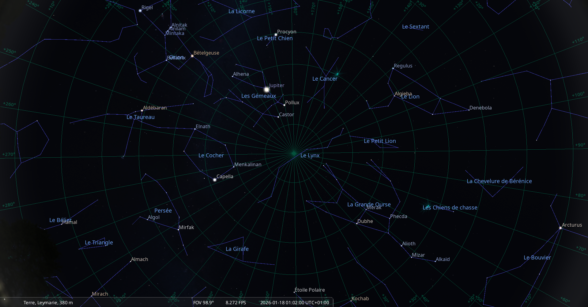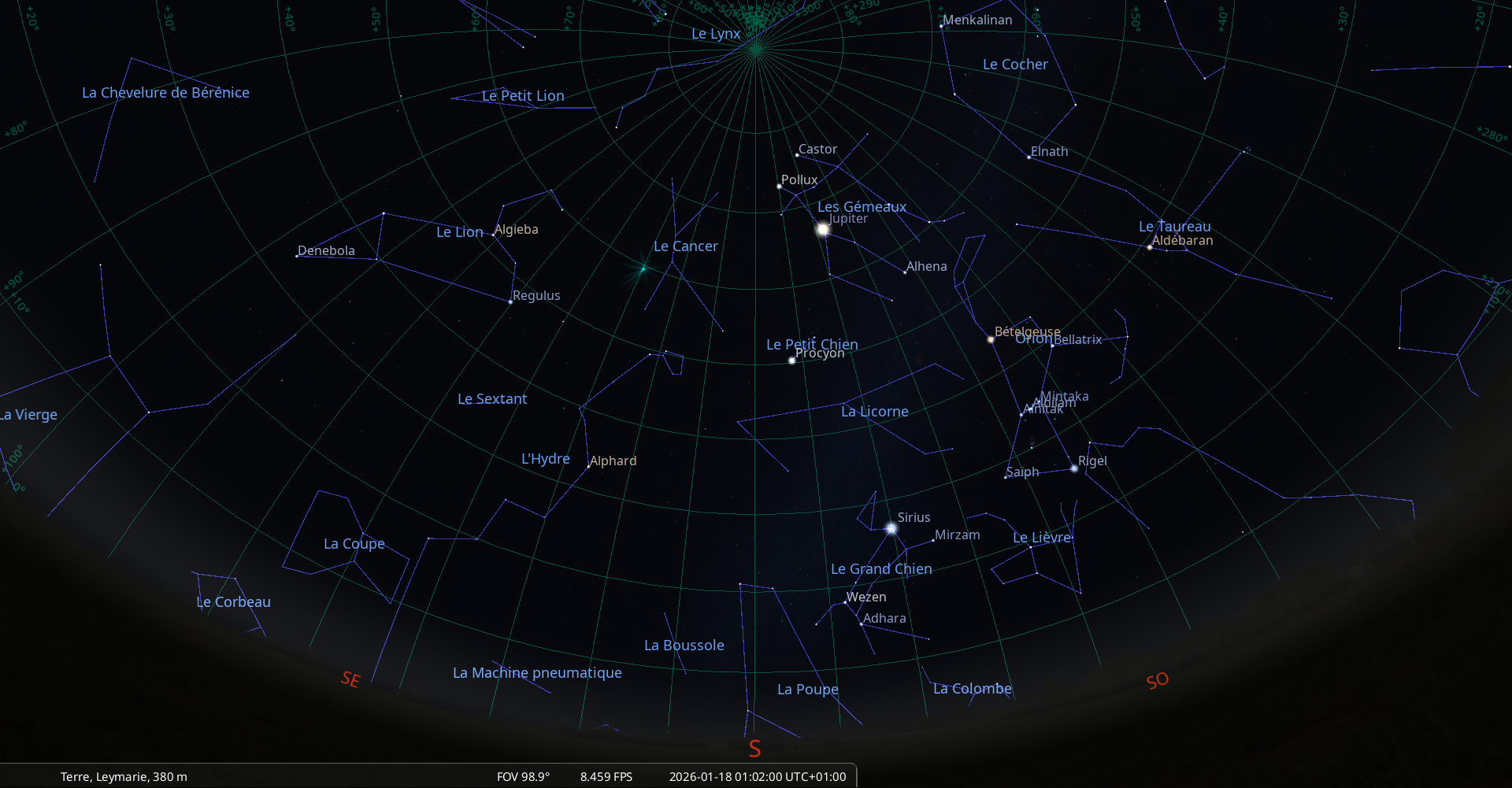 - L’étoile Procyon au méridien à la mi-nuit (0h59 pour le méridien de Paris)