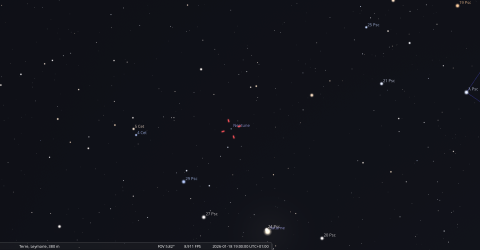 3I/ATLAS maintenant devant le Cancer (Cnc), s’éloigne, son éclat décroît.