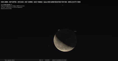 sa portion éclairée est de 36% ; les deux astres sont au levant, au Sud-est, à 6° de hauteur.