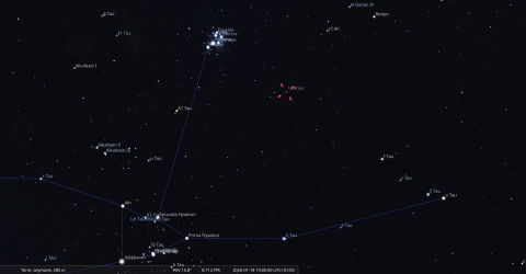 - A 16h11, la Lune est conjointe à Mars dans le plan écliptique, la planète 2°37’ au Nord ; longitude 296°18’ (27e CAP).