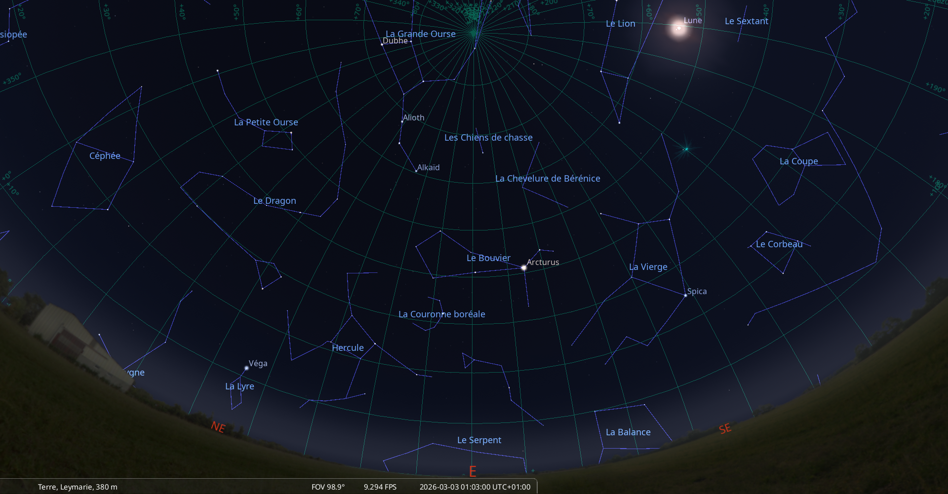 – A 2h28, l’astéroïde (11) Parthénope est à l’opposition du Soleil dans le plan équatorial