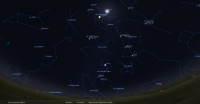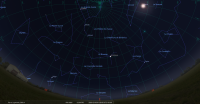 - A 3h54, la Lune est conjointe aux Pléiades dans le plan écliptique, l’amas ouvert (Messier 45) 1°07’ au Sud.