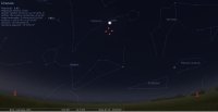 – A 4h46 la Lune est conjointe à Uranus dans le plan écliptique (7e BEL), la planète 4°59’ au Sud. La conjonction dans le plan équatorial a lieu à 8h52 ∆5°18’. Voici comment se présente cette configuration à 5h légales.