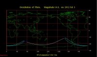 – Le 3 à 12h12, Pluton, à 12h05 dans le plan équatorial et à 12h12 dans le plan écliptique, la planète naine 0°59’ au Nord. Occultation de Pluton par la Lune visible en Antarctique. Voir aussi cette carte