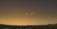 – A 11h26, la Lune est conjointe à Mercure dans le plan écliptique, la planète 5°33’ au Nord. Invisible. Ci-dessous figure formée par Soleil, Lune et Mercure sans la lumière du jour.