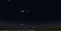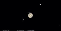 – A 1h06, la Lune est conjointe à Jupiter dans le plan équatorial, la planète 0°56’ au Nord. La conjonction dans le plan écliptique a lieu à 1h17. A suivre dès leur lever vers 19h30 légales. Ci-dessous à l’heure de la conjonction : elles sont proches de leur culmination.