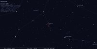 – Uranus est devant les Poissons. Elle culmine aux alentours de 21h20 à 43° de hauteur (pour latitude 45° Nord) et se couche vers 4h. Rétrograde du 13 juillet au 13 décembre. Ci-dessous sa position le 6 à 20h légales. Elle s’écarte de l’étoile 44 Psc, de magnitude équivalente (6). Apprécier son déplacement par rapport à l’étoile 44 Psc en un mois.