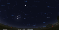 – Mars, devant le Capricorne depuis le 25 décembre, arrive devant le Verseau le 29 janvier à 16h42 ; elle se couche toujours à peu près à la même heure (18h25 pour notre localisation), mais, le Soleil qui se couche, lui, de plus en plus tard, la noie de plus en plus dans les lueurs crépusculaires ; on peut encore tenter d’assister à son coucher en s’aidant de jumelles, à l’horizon Ouest-Sud-Ouest, vers 18h45 légales.