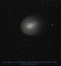 – C/2012 X1 (LINEAR) a explosé. Les observateurs ont rapporté une augmentation de 100 fois sa luminosité : elle était prévue à une magnitude supérieure à 14 ; or elle est maintenant proche de 8.5. Sa coma (le halo qui l’entoure) est semblable à celui de la comète 17P/Holmes qui avait pareillement explosé fin octobre 2007.