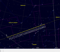 – Devant la tête du Serpent depuis le 6, elle se dirige vers le Bouvier et la Couronne Boréale.