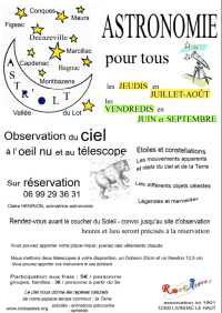 Soirées d’astronomie pour tous au départ de différentes communes de la région de Decazeville (Aveyron - Lot - Cantal)