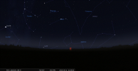 - Elle se lève aux alentours de 2h40, de plus en plus tôt. Son élat augmente : magnitude -2.0 ; elle s’élève de plus en plus haut avant la fin de la nuit ; observer le passage de la grande tache rouge et le ballet de ses satellites (voir fiche ephebdo)
