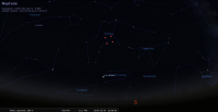 – C/2012 K1 (PanSTARRS) se trouve devant la Poupe, sous le Grand Chien, soit très bas sur l’horizon dans le ciel du matin pour les observateurs de l’Hémisphère Nord ; mesurée à magnitude 7.1 le 3 octobre, son éclat diminue.