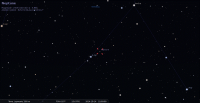 - Le 12, entre 1h23 et 1h41, l’astéroïde (1930) Lucifer (diamètre 40 km : magnitude 16.7) occulte une étoile de magnitude 10.0 (2927-01804-1) de la constellation du Cocher (AD 6h23m36s/déclinaison +37°34’55’’ - coordonnées J2000) pour les observateurs avertis situés sur une bande traversant la France du Sud-ouest au Nord-est. La diminution d’éclat de l’étoile devrait atteindre près de 7 magnitudes et durer 5 secondes au maximum sur la ligne de centralité. Télécharger le logiciel gratuit Occult 4). Tout ce que l’on sait sur l’étoile avec SIMBAD. Ce genre d’observation, à laquelle se consacrent des amateurs avertis est fort utile pour préciser la forme des astéroïdes et la distance des étoiles, grâce à la parallaxe que permettent les différents sites géographiques des observateurs.