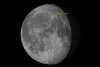 – A 6h42 (pour notre localisation), l’étoile HD 42 351 (Cocher ; m 6.4) est occultée par la Lune ; elle réapparaît , du côté ombre à 7h30. Les deux astres sont alors à une soixantaine de degrés au-dessus de l’horizon, la fraction éclairée de la Lune étant de 65%.