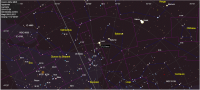 – Devant la constellation de la Vierge (Virgo - Vir) depuis le 17 septembre, il arrive devant la Balance le 31 octobre à 13h44 (longitude écliptique 218°1’ (9e SCO°) et traverse cette constellation jusqu’au 22 novembre (il y une erreur sur la page Wikipedia : ce n’est pas du 31 septembre (!) au 22 octobre mais bien du 31 octobre au 22 novembre).