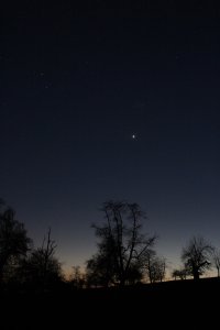 - Est de nouveau du soir depuis sa conjonction supérieure au Soleil le 10 avril ; elle sera visible à partir du 20 avril dans le couchant et ses conditions d’observation deviendront très bonnes pour nos latitudes à la fin du mois ; elle sera à son élongation maximale le 7 mai, puis replongera rapidement vers l’astre du jour. Sa prochaine conjonction inférieure se produira le 30 mai ; sa prochaine conjonction supérieure le 23 juillet.